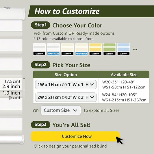 FOIRESOFT Standard Zebra Roller Shades and Blinds [Basic, White, W47 in X H64 in(119W x 163H cm)] Dual Layer Sheer for Day and Night Light Control Privacy, 20 to 105 in Height