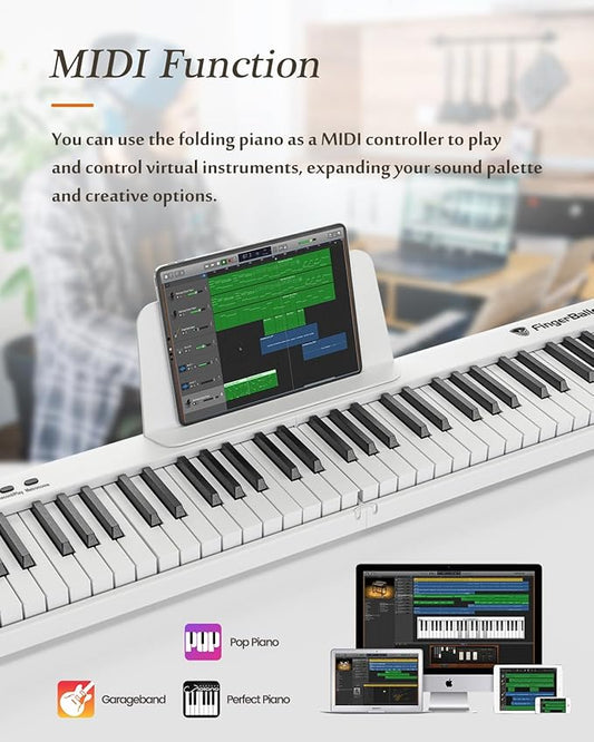 Portable Piano Keyboard, Semi-Weighted Folding Digital Piano 88 Key, Full Size, Wood Grain, Electric Piano Keyboard w/MIDI Bluetooth, Suitable for Adult, Toddler, Kids