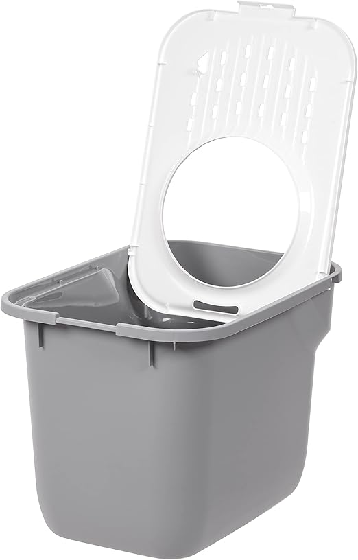 Rectangular Cat Litter Box with Catching Lid - Medium - Top Entry Stylish Enclosed Kitty Dog Proof Box, Litiere Pour Chat Bac - Gray/White